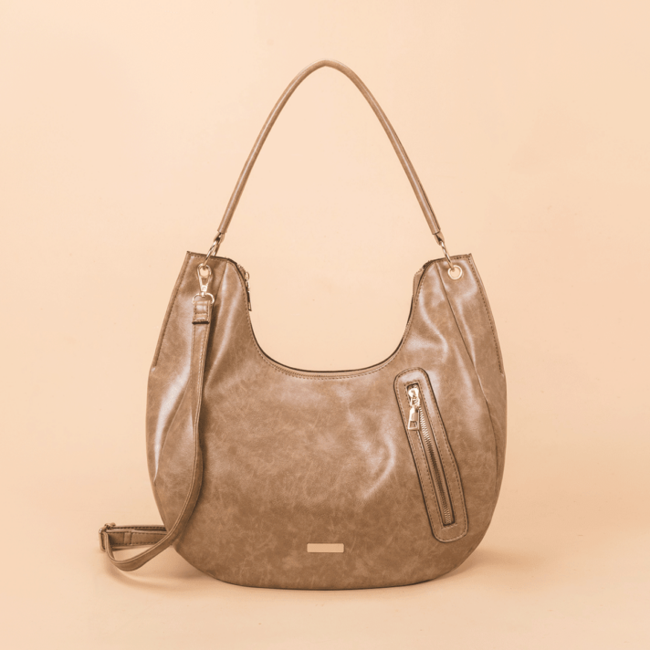 Esta bolsa conta com uma alça transversal e um bolso externo com zíper. Este modelo possui as cores Preto, Khaki, Rose e Caramelo. Verifique a disponibilidade.
