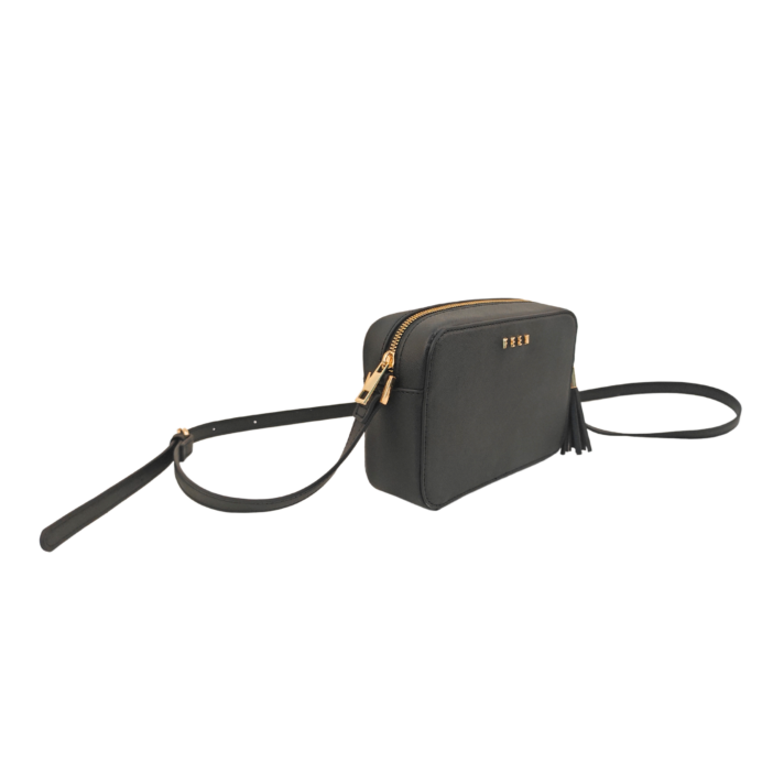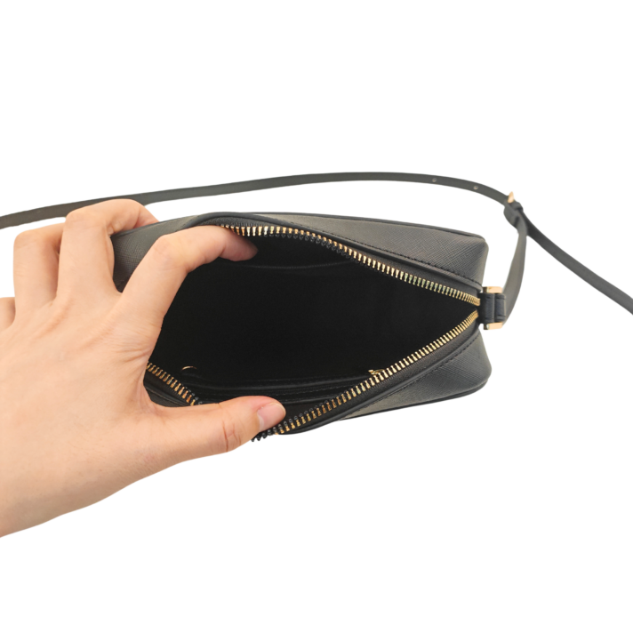 Bolsa pequena em PU, alça transversal, bolso interno, forro em poliéster. Peso: 0.292 Kg. Dimensões: 20 x 5.8 x 13.8 cm (AxLxC).