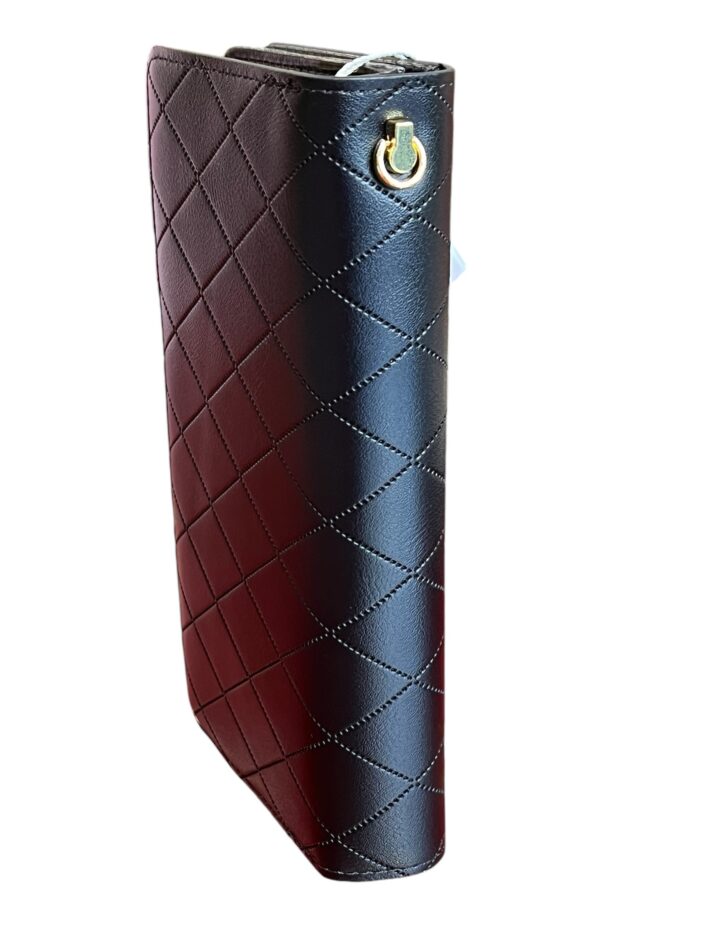 Apresentamos a carteira feminina em couro sintético premium, desenhada para oferecer elegância e funcionalidade em um único acessório. Com design moderno e sofisticado, esta carteira se destaca pelo acabamento texturizado em padrão matelassê e ferragens metálicas douradas, que proporcionam um toque de luxo.