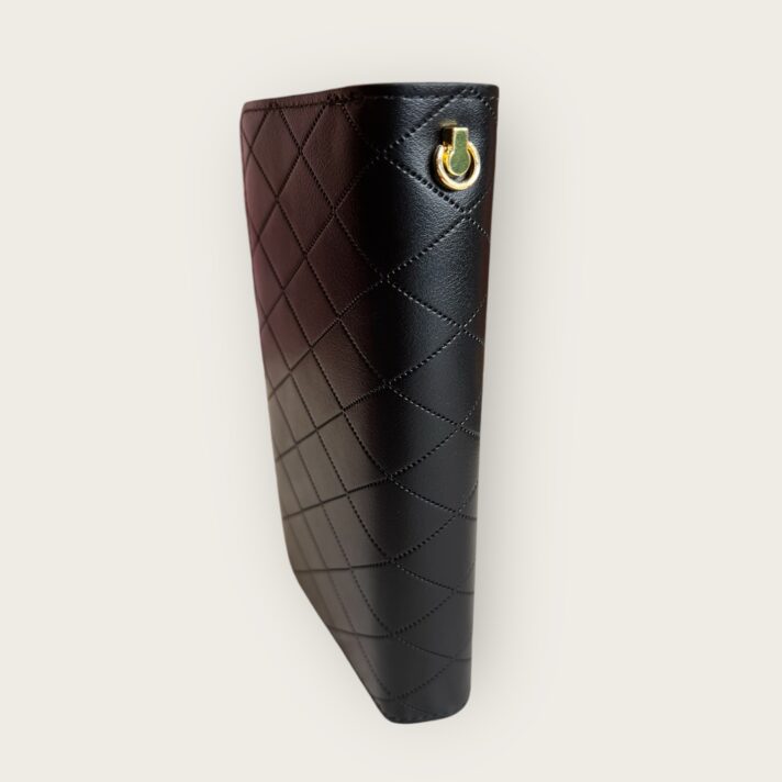 – **Material**: Couro sintético de alta qualidade, com acabamento em padrão matelassê em toda a superfície.
