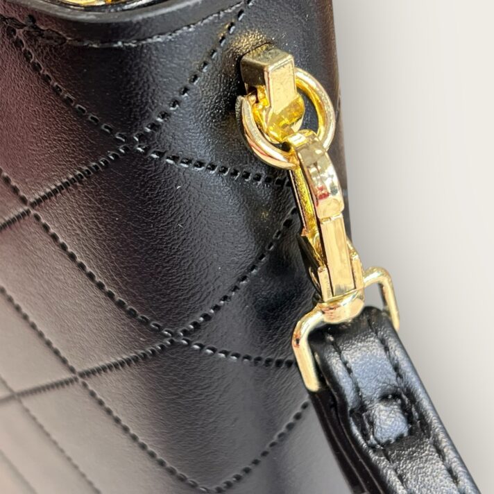 – **Ferragens**: Detalhes metálicos dourados, incluindo um fecho de encaixe de alta durabilidade.